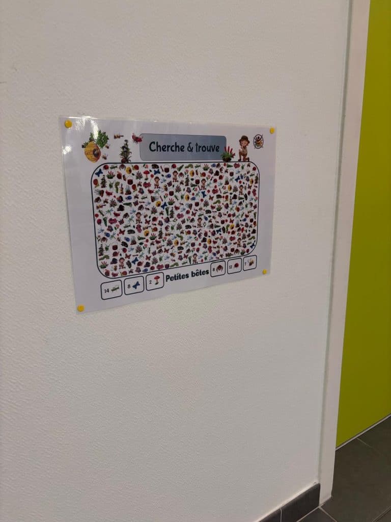 Et pour finir, l’animation phare de la maison de santé depuis cette fin d’été, pour vous faire patienter et faire patienter les enfants, est le « cherche et trouve » géant qui se trouve dans le patio de la maison de santé. A vous de jouer !!!!